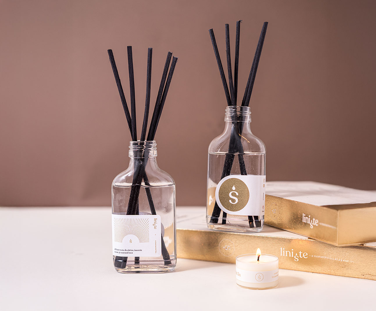 Bucură-te de momentele tale preferate acum și într-un difuzor liniștit, cu bețe din ratan natural. Recipientul difuzorului continuă tradiția borcanului și vine sub forma unui flask de sticlă. Eticheta are două părți pentru a se integra ușor în casa ta – eticheta are o bază neutră, o față mai minimalistă și o față cu un mesaj Liniștit.